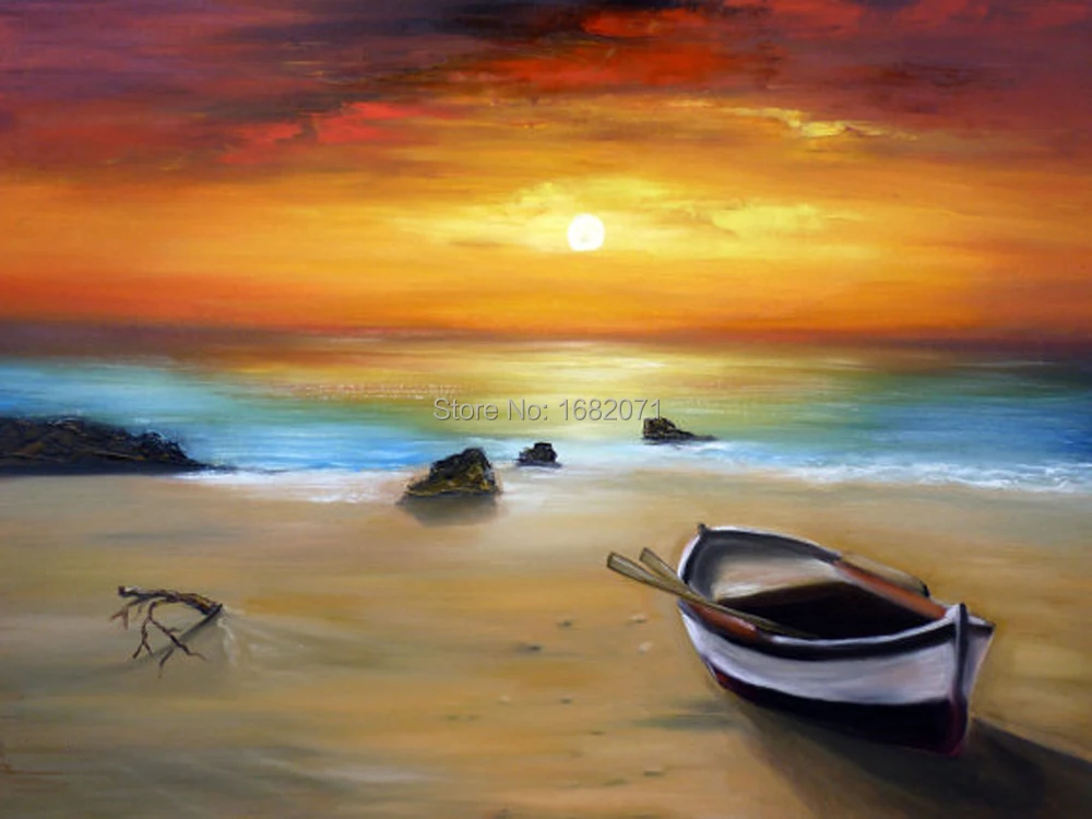 Peinture à l'huile sur toile avec Impression | Paysage abstrait, peinture sur toile, peinture à l'huile, mer et bateau, décor pour salon | AliExpress